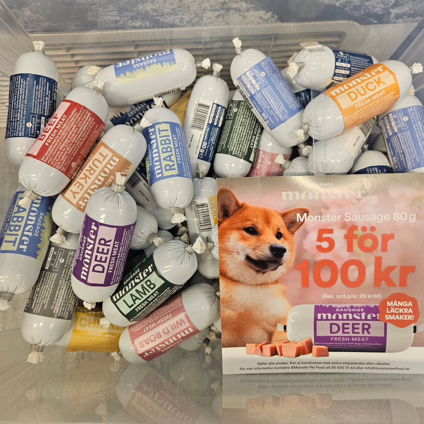 Vi försöker ha det mesta till våra djur – och gärna något extra som hundöl, hundglass och hundpommes. Även om man ofta säger “djuraffär” säljer vi inga levande djur i butiken, utan foder, leksaker, hälsoprodukter och accessoarer.