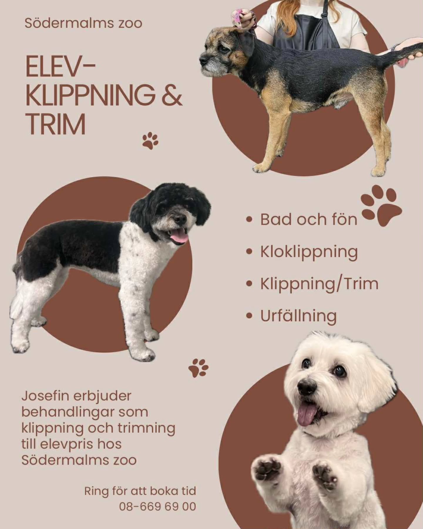 Vi erbjuder allt från kloklippning för hund, katt, smådjur, fåglar, till trim och tandbehandlingar.